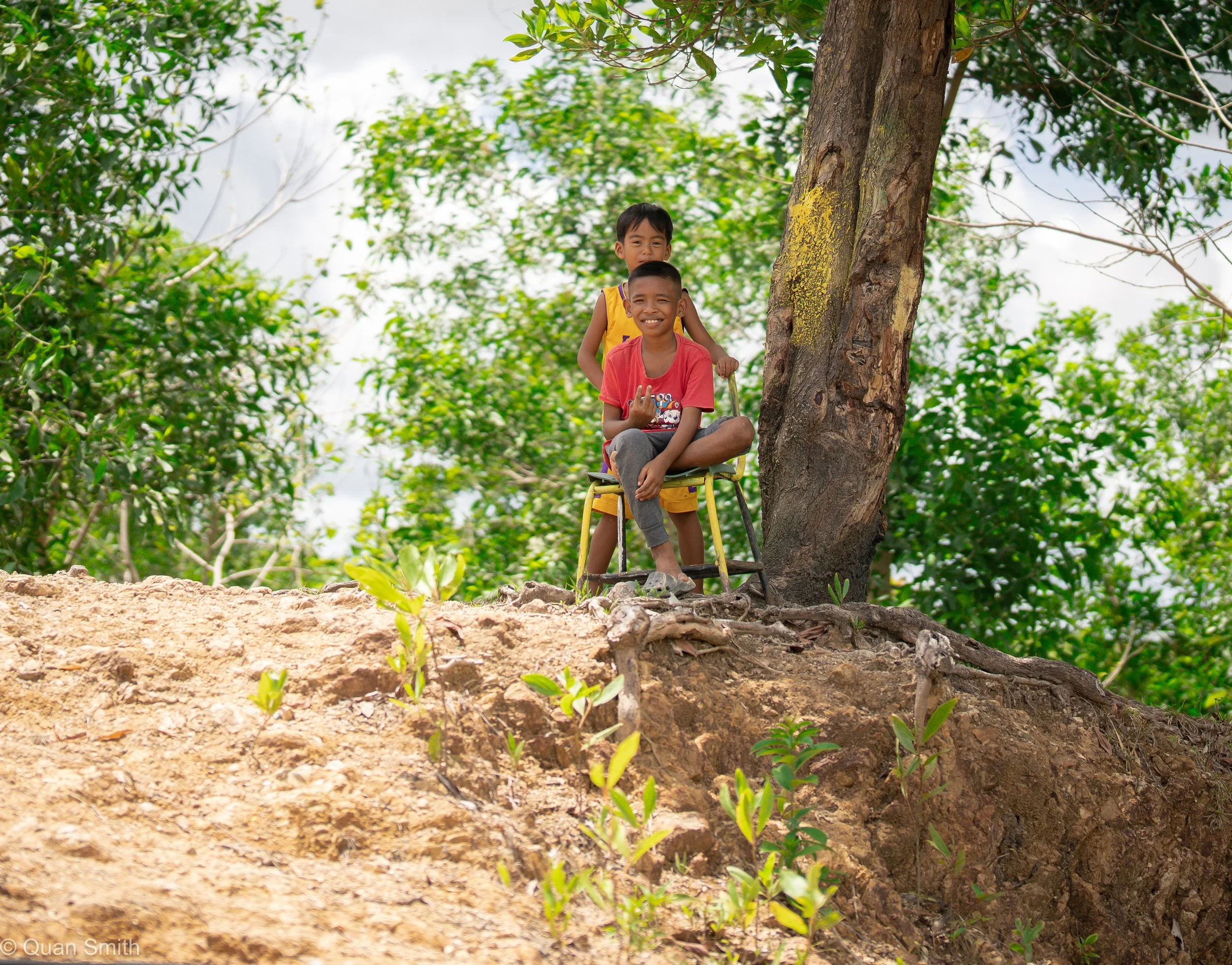 Here, two boys are perched on a chair under a tree, seemingly lost in the joy of the moment. This natural shot captures the simplicity and happiness that defines childhood, creating a heartwarming contrast to the formality of the ceremony.