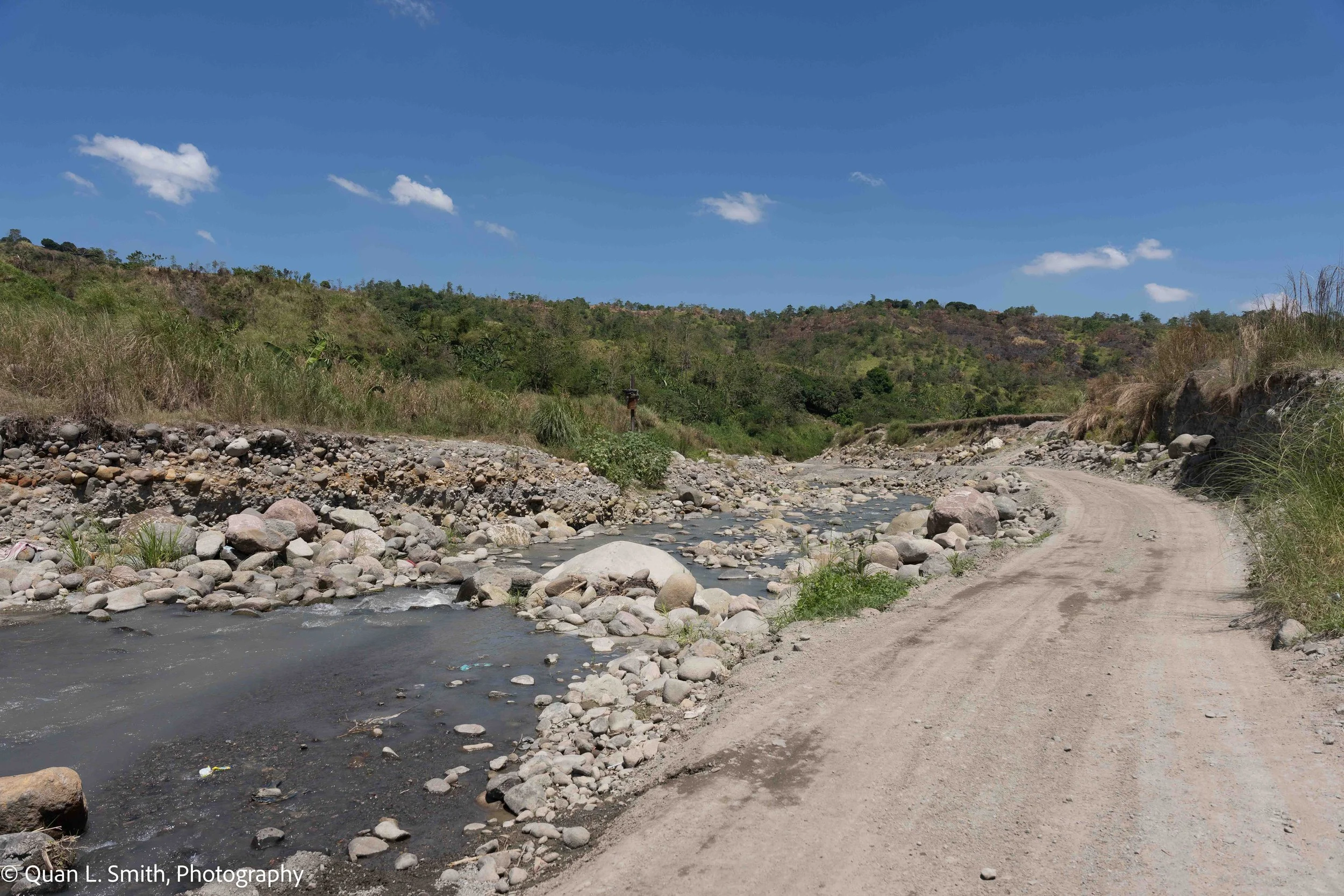 A rugged, unpaved trail winds alongside a shallow stream surrounded by rocks and sparse vegetation—this is part of the natural landscape where the Aeta Mag-antsi tribe live, hunt, and fish in Sitio Batson, Bamban, Tarlac. The hills in the background mark the edge of the forested mountain areas that have long served as the ancestral domain of the tribe. This terrain, though harsh and isolated, is deeply intertwined with their traditions, sustenance practices, and spiritual connection to the land.